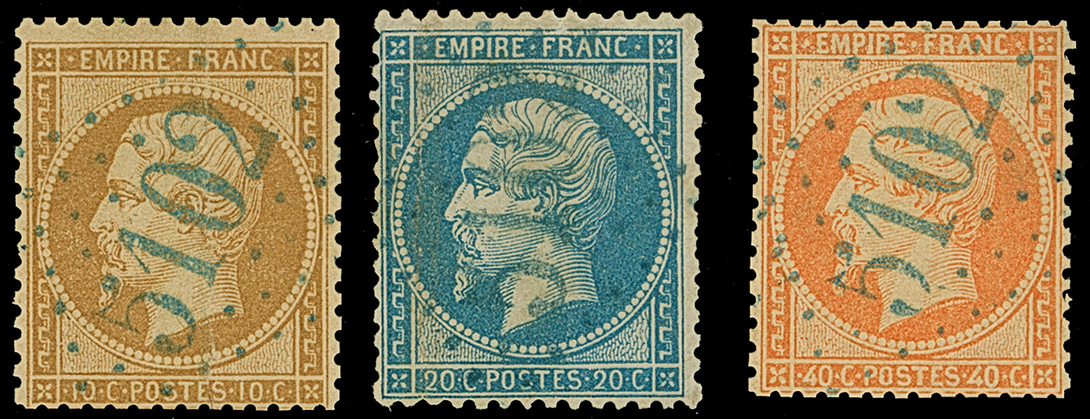 TULCEA: "5102", GC in blue, clear and central strikes on Napoleon perforated 10 c., 20 c. and 40 c. Small faults, 40 c. re-perforated.