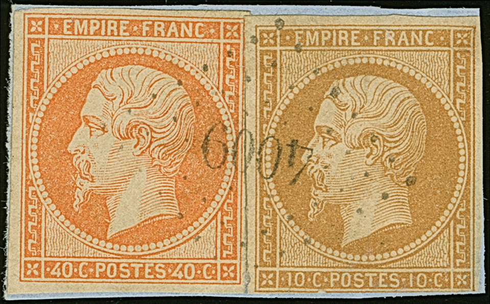 IBRAILA: "4009", PC, clear strike on small piece with 1853/54, Napoleon 10 c. and 40 c.