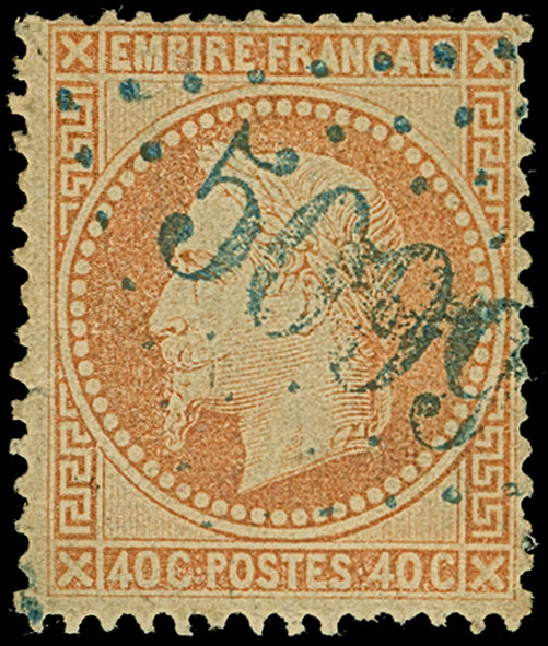 KUSTENDJE: "5139", GC in blue, clear and central on Napoleon lauré 40 c. orange. Light horizontal crease. Signed Calves