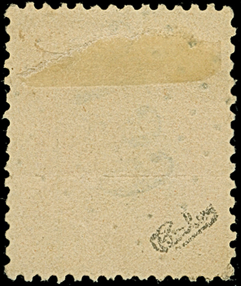 1858, Bull's head 54 par. blue on green horizontally laid paper, fresh colours and wide margins, with green cds. “GALATZ 2/9”, a tiny paper break due to cancellation pressure near the “P” of “ПOPTO” and a faint corner crease at the bottom left in the wide outer margin not affecting the appearance, fresh and a very attractive example of this rarity, Cert. Philatelic Experts (2026)