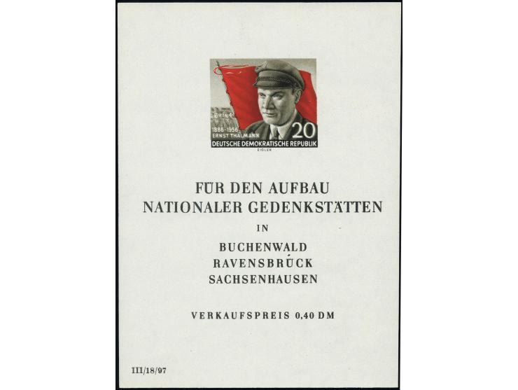 Thälmann-Block, Erstauflage mit verschwommener Mützennaht, Format 73x100 mm, postfrisch mit herstellungsbedingter Gummischliere, sonst tadellos, unsigniert mit Fotoattest Schönherr BPP (2004) (Mi. 3.500,-)