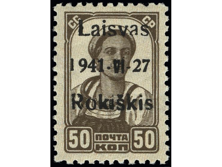 1941, 5-60 K. einheitlich von Aufdruckfeld 49 mit Aufdruckfehler "weiter Abstand zwischen 1 und 9 sowie Akzent über I von VI", postfrisch, 5-10K. einige gering verkürzte Zahnspitzen, sonst tadellos