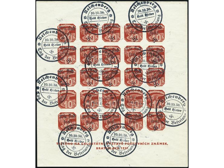 Bratislava 1937 Blockausgabe, die vierte waagerechte Reihe ohne Aufdruck, sauber mehrfach mit Sonderstempel gestempelt, nach 80 Jahren in dieser Form erstmals bekannt und eine der ganz großen Seltenheiten, tadellos, sign. Reibg HP sowie Fotoattest Brunel (2020)