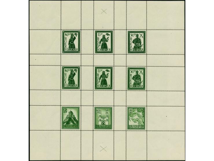 1944, Unverausgabte mit getöntem und aufgehelltem Hintergrund 10-80 Pfg. im kompletten Kleinbogen zu 9 Werten in grün, postfrisch, in tadelloser Erhaltung eine der großen Seltenheiten, Fotoattest Brunel BPP (2003)