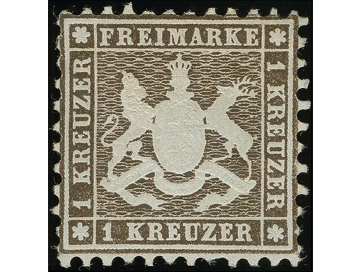 1862, Wappen weit gezähnt: 1 Kreuzer schwarzbraun, farbfrisch und für diese Ausgabe gut gezähnt, ungebraucht mit frischem Originalgummi. Einwandfrei. Fotobefund Irtenkauf BPP (2006)