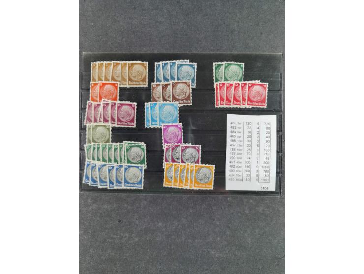 1932, Freimarken Hindenburg Medaillon, Wz. 2, 3-100 Pf., postfrischer Bestand von einem bis neun Stück jedes Wertes, signiert Schlegel D. BPP (Mi.-Nrn. 482-95).