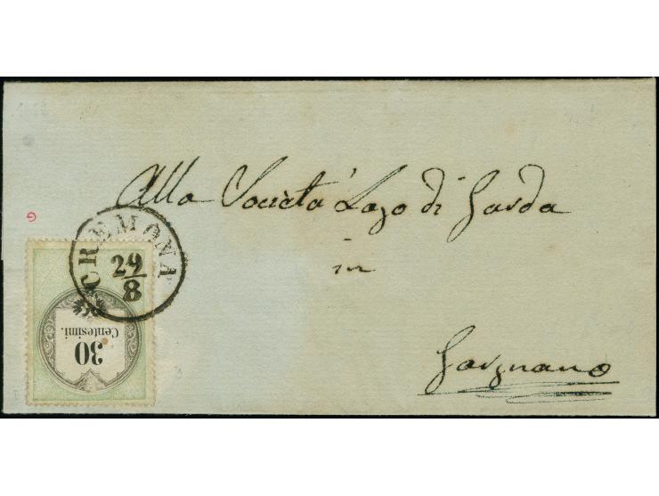 "CREMONA 29/8", EKr., sauber auf Stempelmarke 30 Centesimi, auf kleiner Briefhülle nach Gargnano