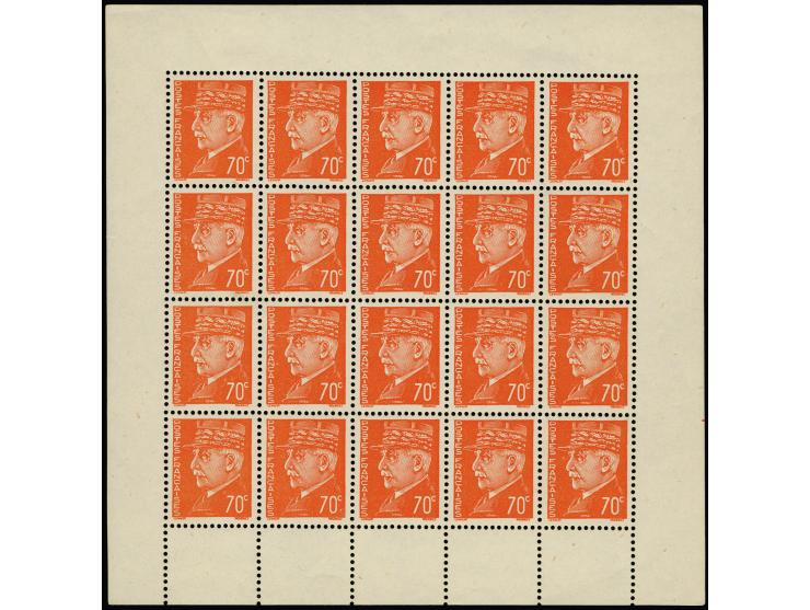 1941, Petain 70C. dunkelgelblichrot, kompletter Bogen zu 20 Werten, postfrisch bzw. Falze im Rand, tadellos, Fotoattest El Majdoub (2025)