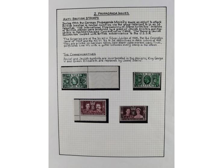 1944, sehr interessante ungebrauchte/postfrische und gestempelte Sammlung, dabei Gedenkblätter Mi.-Nr. 2 PG, 3 PG, 9PG(2), guter Teil “LIQUIDATION OF EMPIRE” mit insgesamt 52 Werten, teils in Streifen, außerdem Mi.-Nr. 22 ungebraucht, Mi.-Nr. 27(2), 29 postfrisch, Mi.-Nr. 30-31 ohne Gummi, Mi.-Nr. 32A und B sowie 50 ungebraucht, Britische Fälschungen für das von Deutschland besetzte Frankreich Mi.-Nr. 36-38A sowie ex Mi.-Nr. 40-47 sowie Azad Hind, teils etwas unterschiedliche, meist aber gute Erhaltung