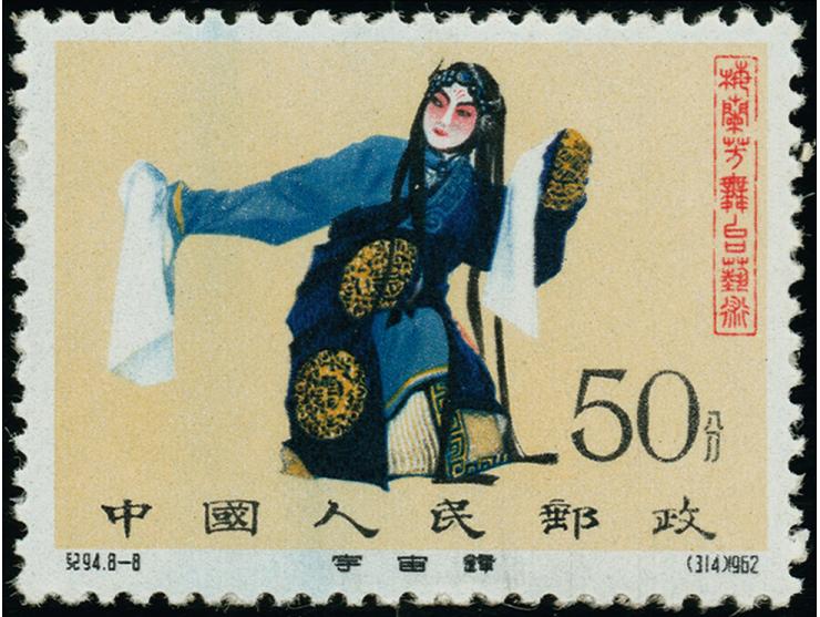1962, Mei Lan-fang 4 – 50 f. perforated, mint never hinged, 2 values gum partly lightly toned