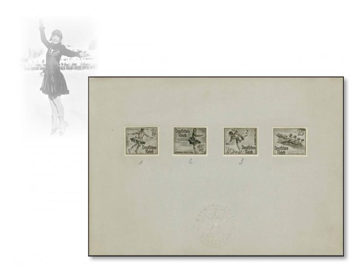 Olympische Winterpiele, 4 Fotoessays auf Vorlagekarton der Reichsdruckerei. Äußerst selten.