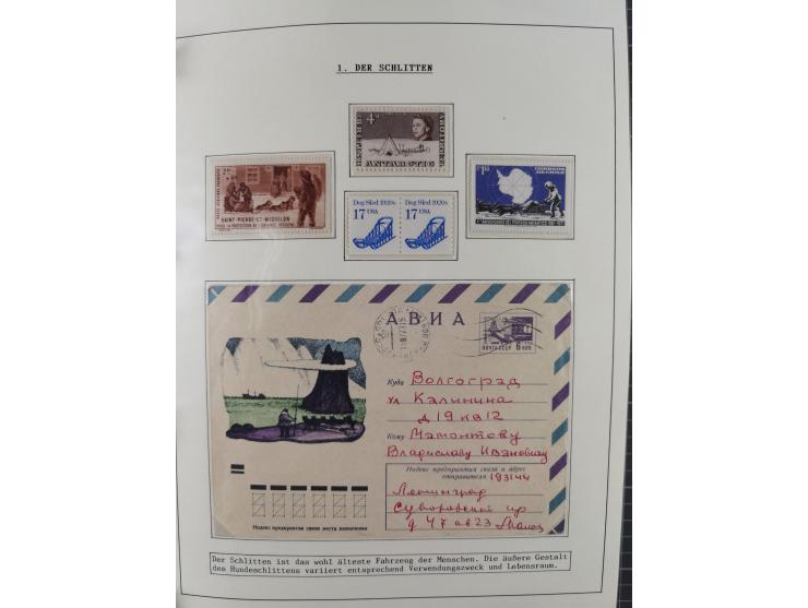 HUNDE: 1894/1992 (ca.), interessante Ausstellungssammlung “Schlittenhunde im Einsatz”, mit vielen Marken, FDCs, Schmuckbriefen, Telefonkarten, dabei frühes und besseres Material, ferner etwas Literatur, in zwei Ordnern