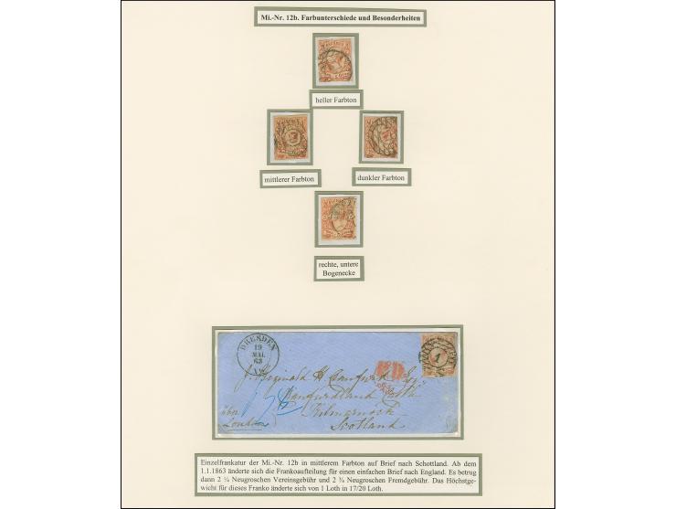 5 Ngr., Farbstudie auf 4 Ausstellungsseiten mit 15 gebrauchten Einzelwerten, gebrauchtem Paar, ungebrauchtem Viererblock und 4 Einzelfrankaturen (je 2 in den Postverein bzw. nach England). 4 Fotobefunde Rismondo BPP