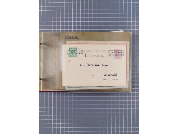 1872/1972, kleine Sammlung “Anlandestempel” inkl. Ausland mit 33 Briefen und Ganzsachen sowie einige lose Marken und Briefstücke, dabei u.a. RA3 “AUS SWINEMÜNDE P. DAMPFS. 16.5.74” auf Brief mit 1 Groschen, Ra2 “Aus Schweden per Stralsund” auf GSK-Vordruckkarte 1889 mit Zufrankatur, Ra3 “AUS WOLLIN DAMPFSCHIFF 10.6.91” auf GSK, frankierter Brief Island 1924 mit Ra1 “SHIP LETTER” und Maschinenstempel “ABERDEEN” und frankierter Brief aus Finnland 1930 mit Stempel “STOCKHOLM” und Ra1 “FRAN FINLAND”, zum Teil etwas fehlerhaft, ex Steinmeyer