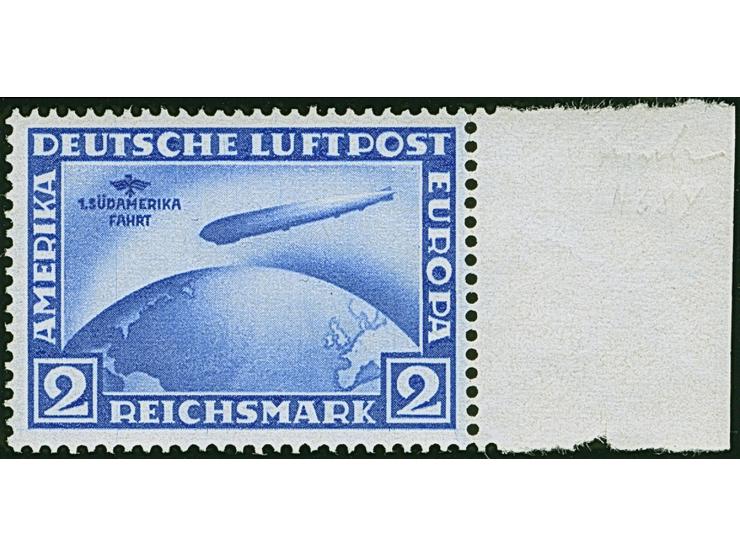 1930, Südamerikafahrt  2 M. lilaultramarin mit liegendem Wasserzeichen vom rechten Bogenrand (dort Bleistiftspur), farbfrisch und sehr gut gezähnt, Marke tadellos postfr. Signiert Sieger und Woter.