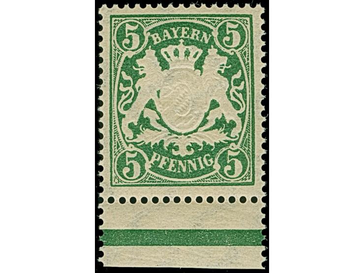 1890, 5 Pfennig grün auf Papier y mit Wasserzeichen 3, Unterrandstück, postfrisch. Tadellos und unsigniert. Fotoattest Helbig BPP (1990)