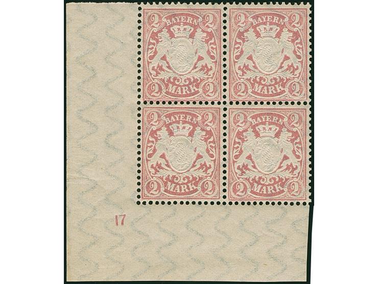 1890, unverausgabte 2 Mark mittelbräunlichlila, linker unterer Eckrand-4er-Block mit Pl.-Nr. "17", postfrisch. Einwandfrei und unsigniert. Fotobefund Sem BPP (2022)