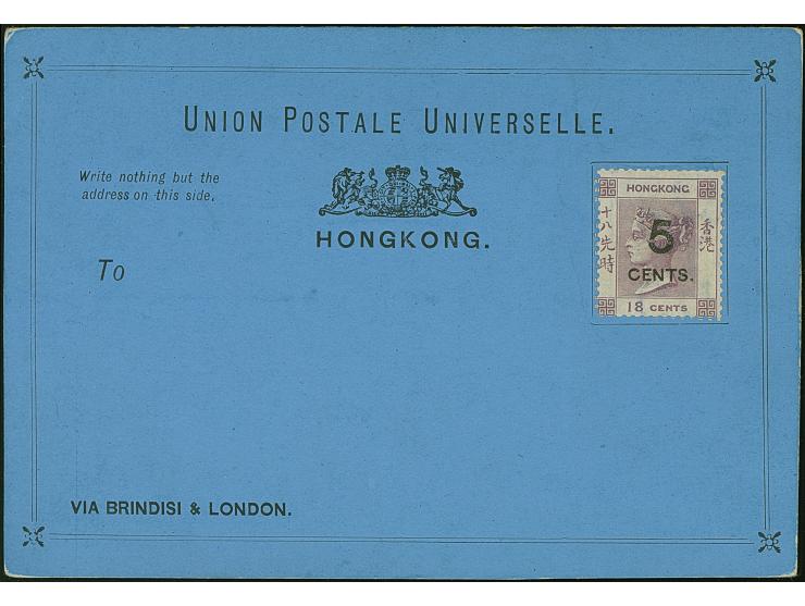 1879 5c. on 18c. lilac on black on blue U.P.U. formular postcard, very fine and fresh, a difficult card to find in nice condition. (Yang P2)