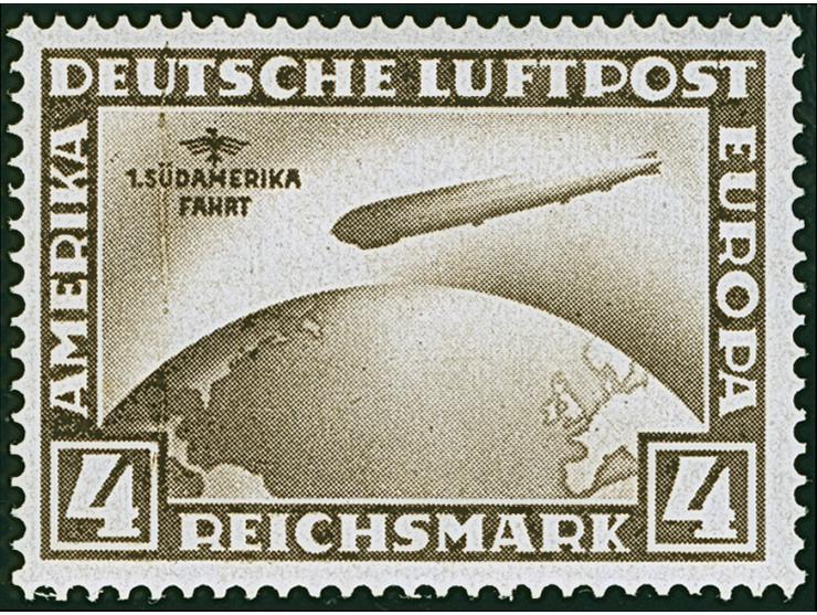 1930, Südamerikafahrt 4 M. mit stehendem Wasserzeichen und Plattenfehler “Blitz neben Adler” (Feld 10), postfrisch, in tadelloser Erhaltung, unsigniert mit Fotoattest D. Schlegel BPP (2010)