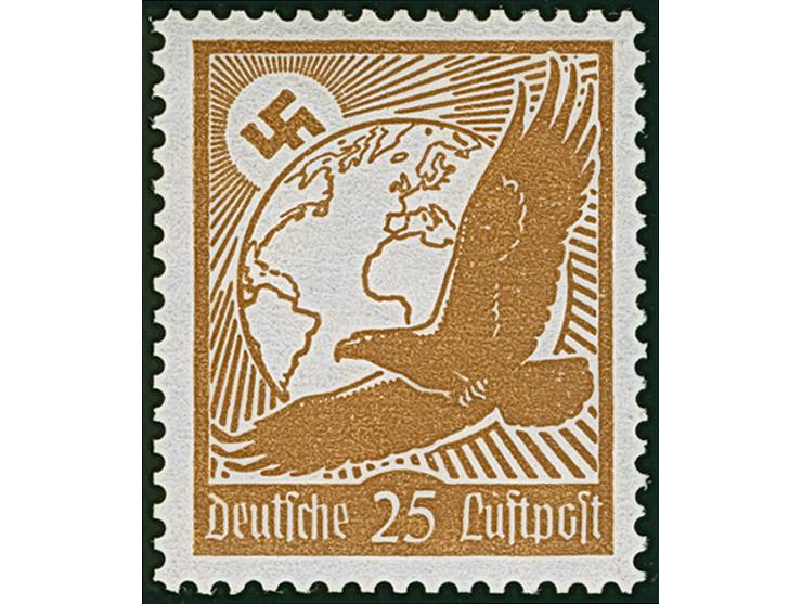 1934, Steinadler 25 Pfg. mit waagerechter Gummiriffelung und Plattenfehler “o in Luftpost oben gebrochen” (Feld 81), postfrisch, in tadelloser Erhaltung, signiert Peschl BPP und Fotoattest D. Schlegel BPP (2007)
