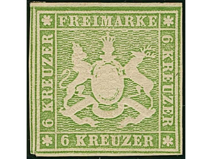 6 Kr. grün, sehr schön farbfrisch und gut geprägt, für diese Ausgabe hervorragend geschnitten, breit-bis überrandig, unten links winziger Vortrennschnitt in den Rahmen, ungebraucht mit originaler Gummierung. Ein schönes Stück dieser ungebraucht recht seltenen Marke. Signiert Georg Bühler, Attest Sismondo (2006)