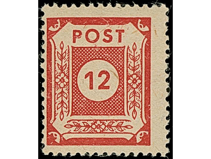 1945, Ziffern 12 Pfg. karminrot, Probedruck auf grauem Papier mit typischer faseriger Zähnung K 13:12 ½, postfrisch und tadellos, sign. Busch sowie Fotoattest Dr. Jasch BPP (2025)