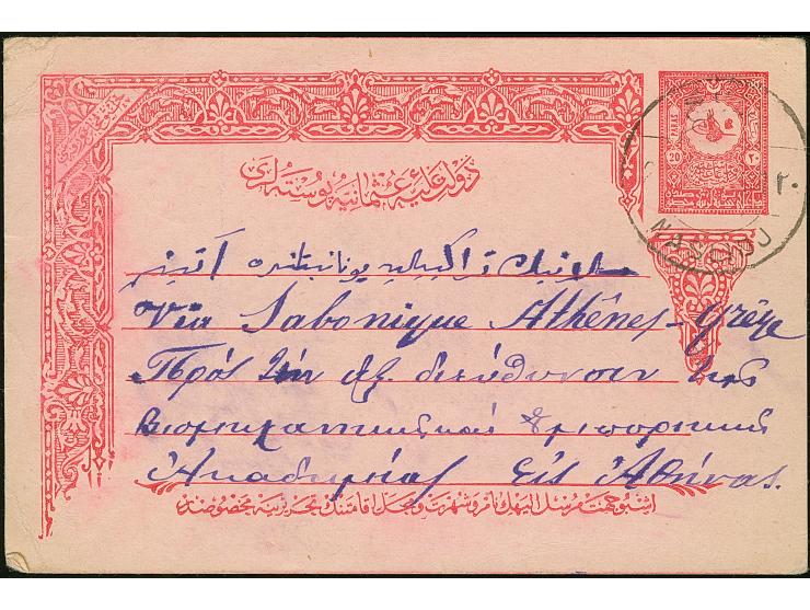 "NASLIDJ ", cds (ISFILA type 3) on postcard with long text, dated 1903, endorsed "via Salonique Athens". Supposed to be unique.