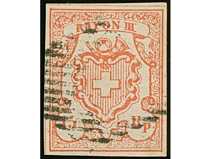 1852, Kleine Ziffern 15 Rp., farbfrisch und breitrandig, leicht entwertet. Einwandfrei. Signiert Moser und Attest Rellstab (1978)