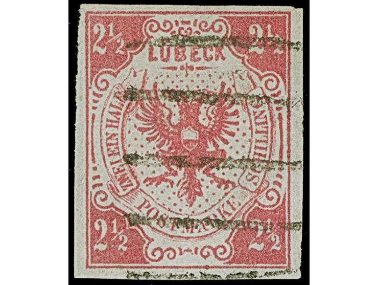 2½  Sch. mittelmagenta, farbfrisch und allseits breitrandig, sauber entwertet durch Strichstempel. Tadellos. Fotobefund Mehlmann BPP (2017)