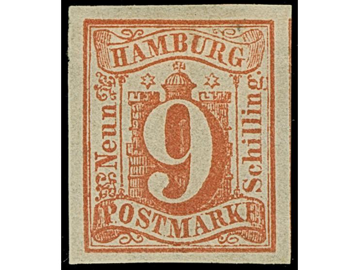 9 Sch., 7 verschiedene Farbproben auf ungummiertem Papier ohne Wasserzeichen, teils kleine Mängel, sehr selten