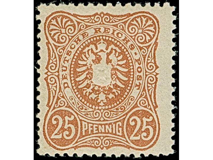 25 Pfg. orangebraun im verbreiterten Format, farbfrisch und gut gezähnt. Die postfrische Marke ist in tadelloser Erhaltung, unsigniert mit Fotoattest Wiegand BPP (1997)