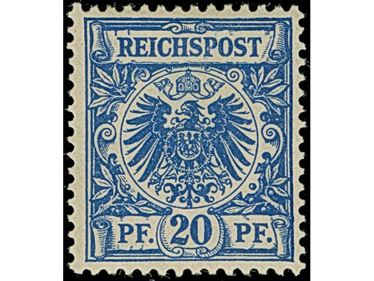 20 Pfg. dunkelblau, farbfrisch und gut gezähnt, postfrisch und in tadelloser Erhaltung. Bisher sind nur wenige ungebrauchte Exemplare in einwandfreier Erhaltung bekannt, unsigniert mit Fotoattest Wiegand BPP (2009)