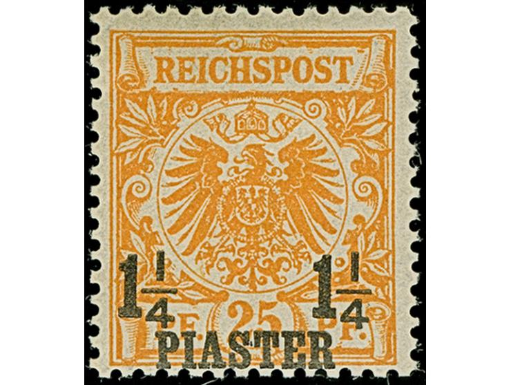 1¼ Pia. auf 25 Pfg. gelborange, ist farbfrisch und gut gezähnt, postfrisch und ist in tadelloser Erhaltung. Postfrische Marken dieser Farbe in einwandfreier Qualität sind bisher nur in ganz wenigen Exemplaren bekannt , signiert W. Brandes und doppelt signiert Mansfeld sowie Fotoattest Jäschke-L. BPP (2006)