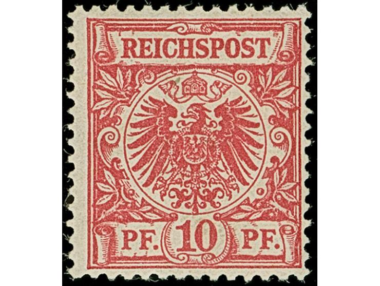 Krone/Adler 10 Pfg. rosarot (leuchtend karmin(rosa) quarzend), ist farbfrisch und gut gezähnt. Die postfrische Marke ist in tadelloser Erhaltung, unsigniert mit Fotoattest Jäschke-L. BPP (2025)
