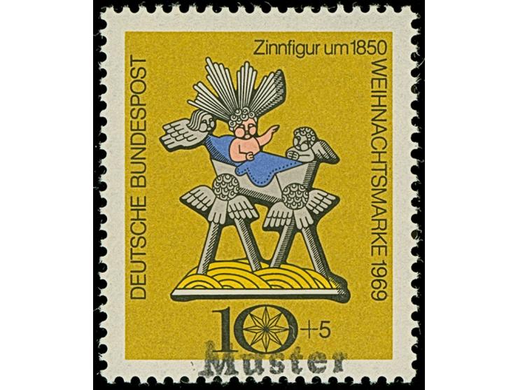 1969, unverausgabte Weihnachten 10 Pfg. ,sogenannte Pausbäckchen-Marke, mit Handstempel “Muster”, postfrisch und in einwandfreier Erhaltung, signiert Schlegel BPP mit Fotoattest (1981)