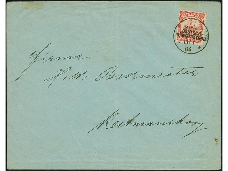 “Hasuur” handschriftlich und Wanderstempel vom 13.1.04 klar auf Kaiseryacht 10 Pfg. ohne Wasserzeichen auf Brief nach Keetmanshoop. Der Umschlag mit Falt- und Randspuren, die Marke ist in einwandfreier Erhaltung, doppelt signiert Bothe BPP