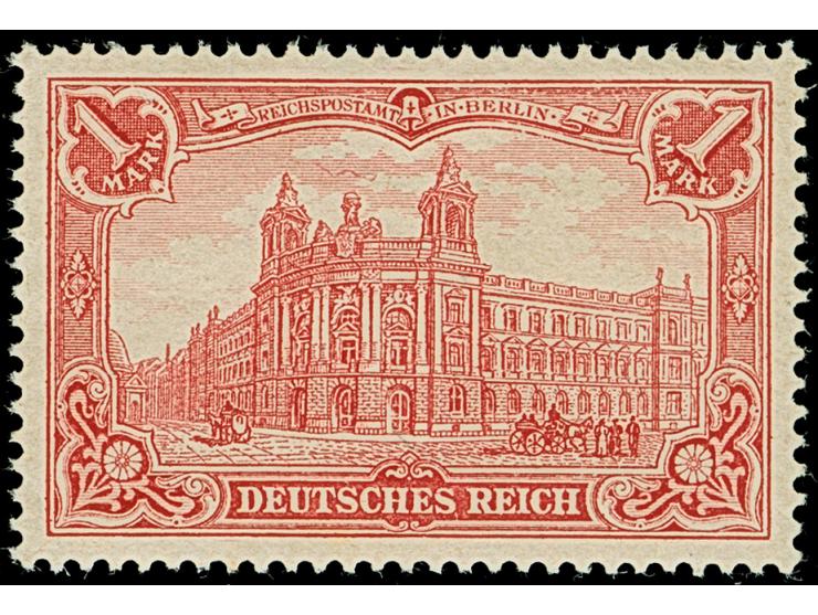 1902/04, 1 M. karminrot, Zähnungslöcher 26:17, postfrisch und in tadelloser Erhaltung. Ein sehr schönes, farbfrisches und sehr gut gezähntes Exemplar, unsigniert mit Fotoattesten Jäschke (1993) und Jäschke-L. BPP (2025)