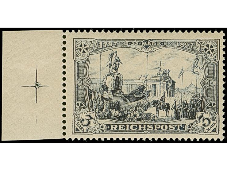 1900, Reichspost 3 M., Type II, mit linkem Seitenrand mit Passerkreuz, postfrisch und in tadelloser Erhaltung. Ein sehr schönes, farbfrisches und sehr gut gezähntes Exemplar, unsigniert mit Fotoattesten Jäschke-L. BPP (1879) und Jäschke-L. BPP (2025)