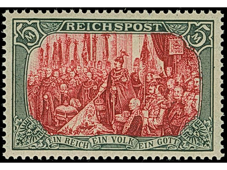 1900, Reichspost 5 M., Type 1 mit weißer und roter Nachmalung, postfrisch und in tadelloser Erhaltung, unsigniert mit Fotoattest Jäschke-L. BPP (2025)