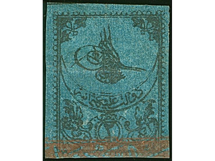 1863, Tughra first printing 2 pia. deep blue on thin paper, fresh colour and good margins all around, unused with original gum, very fine, certificate Isfila (2017). (isf. cat. value 3.800,-€).