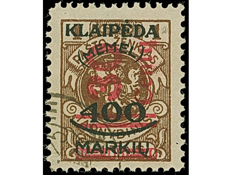 1923, 30 C. auf 400 M. auf 1 L. braun, Type II, gestempelt und in tadelloser Erhaltung. Ein schönes Exemplar dieser nicht häufigen Marke, sign. Dr. Petersen BPP und Fotoattest Huylmans BPP (2025)