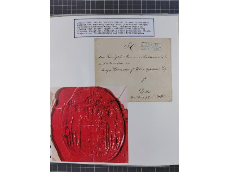 1800/1970 (ca.) interessante Material-Sammlung von etwa 250 Belegen und wenigen Marken, dabei u.a. Dt. Reich Ersttagsstempel auf Loser Mi. 2 und U1, Ballon Monte-Brief, diverse Grenzrayon-Belege, etc., dabei auch wenig Ausland. Ex Dr. Heinz Jaeger