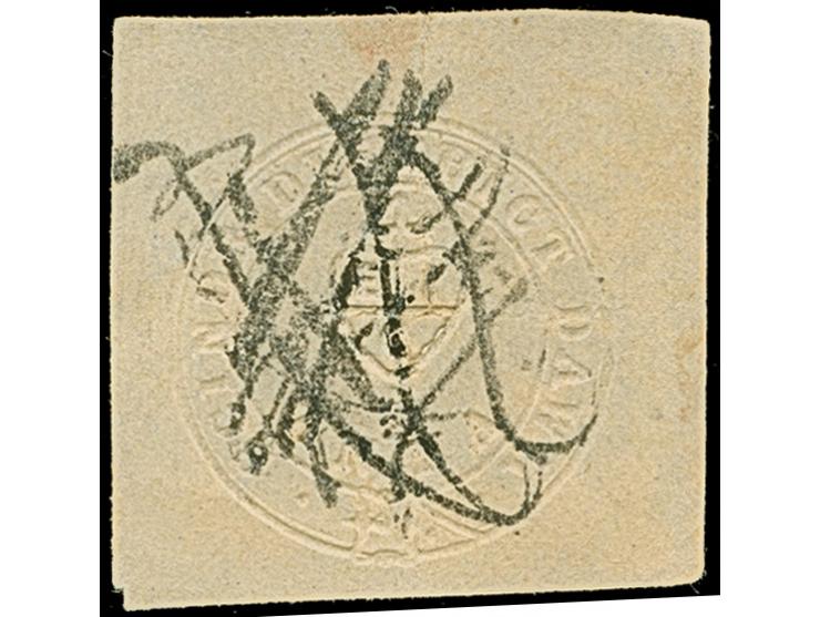 1852, Scinde Dawk 1 a. white, good to large margins, cancelled by pen; tiny paper break in the embossing, otherwise very fine