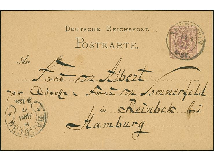 “HAMBURG** 14.JUNI.77” (Spalink 17-6N2) klar als Ankunftsstempel vorderseitig auf Ganzsachenkarte 5 Pfge mit Stempel “NEURUPPIN 11.8.77” nach Hamburg, in einwandfreier Erhaltung, Fotobefund Petry BPP (2013)