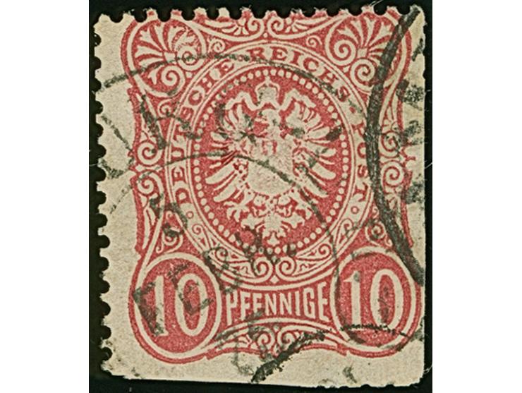 “HAMBURG-L.E. 5.FEBR.75” (Spalink 17-15) recht klar auf loser Marke 10 Pfge lilarot. Die farbfrische Marke ist an zwei Seiten angeschnitten. Trotz der Einschränkungen noch ansprechendes Exemplar mit diesem seltenen Stempel, Kurzbefund Wiegand BPP (1998)
