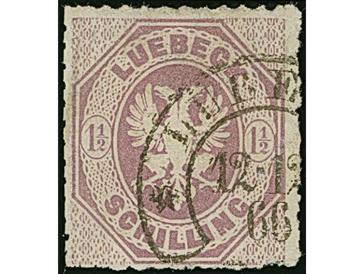 “LÜBECK** 12.12.66” (Spalink 22-1) klar auf loser Marke Lübeck 1½ S. dunkelbraunpurpur, in einwandfreier Erhaltung, signiert Spalink BPP