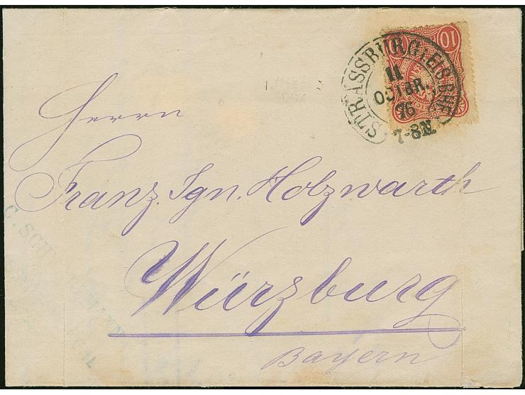 “STRASSBURG i. ELS. BHF. 11.OCTBR.75” (Spalink 36-2N) klar auf 10 Pfge. dunkelkarmin auf komplettem Faltbrief nach Würzburg mit Ankunftsstempel. Die farbfrische Marke rechts mit senkrechtem Bug und ist stärker getönt, der Faltbrief unten rechts mit Einriss. Trotz der Einschränkungen ein interessanter Brief mit Frühdatum der 3. Verwendungsphase, signiert Spalink BPP