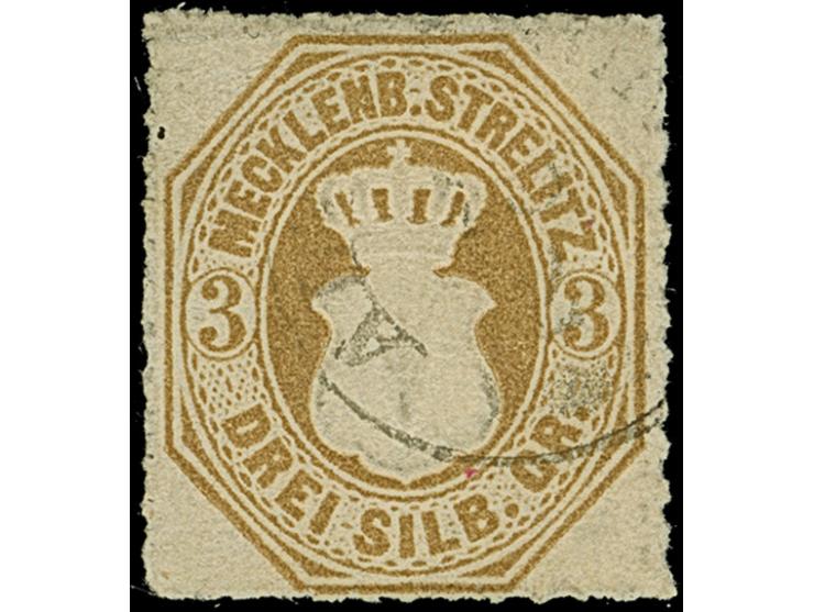 1864, 3 Sgr. ocker, leicht entwertet mit EKr. von Altstrelitz. Einwandfrei. Fotoattest Berger BPP (1997)