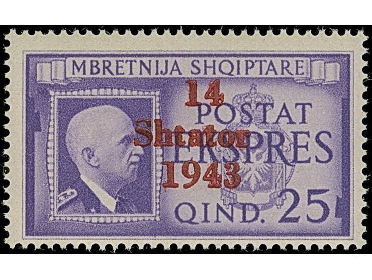 1943, Freimarken 1-25Q. einheitlich mit Aufdruckfehler “S von Shtator gebrochen”, Aufdruckfeld 7 bzw. 28, teis Randstücke, postfrisch, tadellos, teils sign. Dr. Rommerskirchen BPP bzw. Fotoattest Brunel (2025)