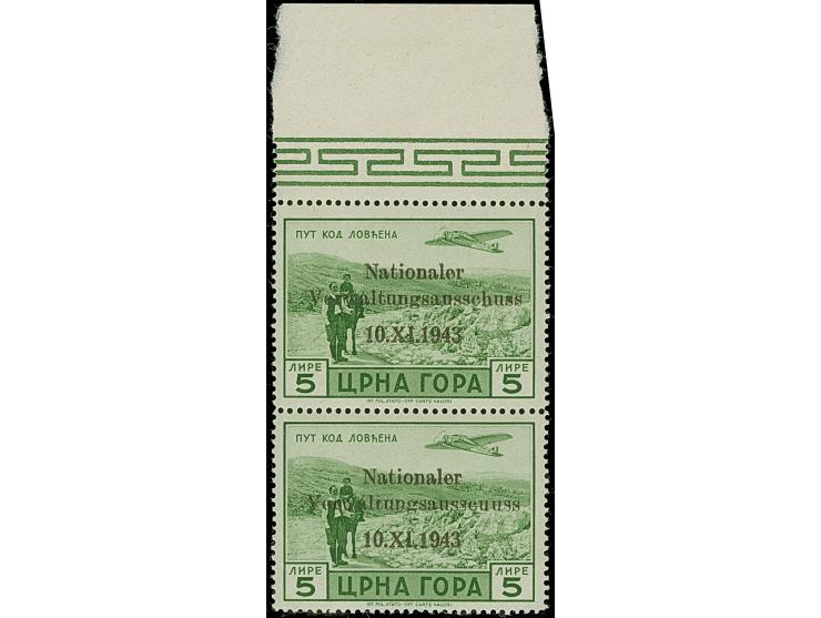 1943, Verwaltungsausschuss 25 Cent - 5 Lire, je im waagerechten Oberrandpaar, der untere Wert einheitlich mit Aufdruckfehler "Verwaltungsausscuuss", postfrisch, tadellos, so sehr dekorativ und selten, sign. Krischke BPP sowie Fotoattest Brunel (2016)